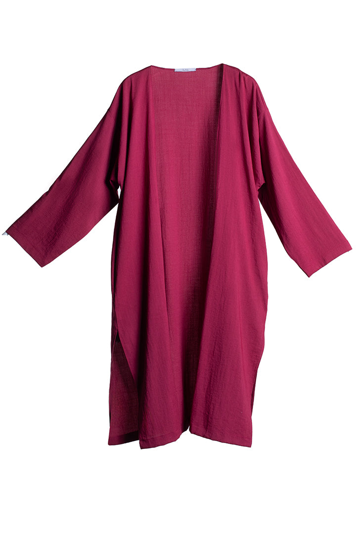 Samurai style jacket, long line, loose fit ,drop shoulder, front open, buttonless, two in-seam side pockets