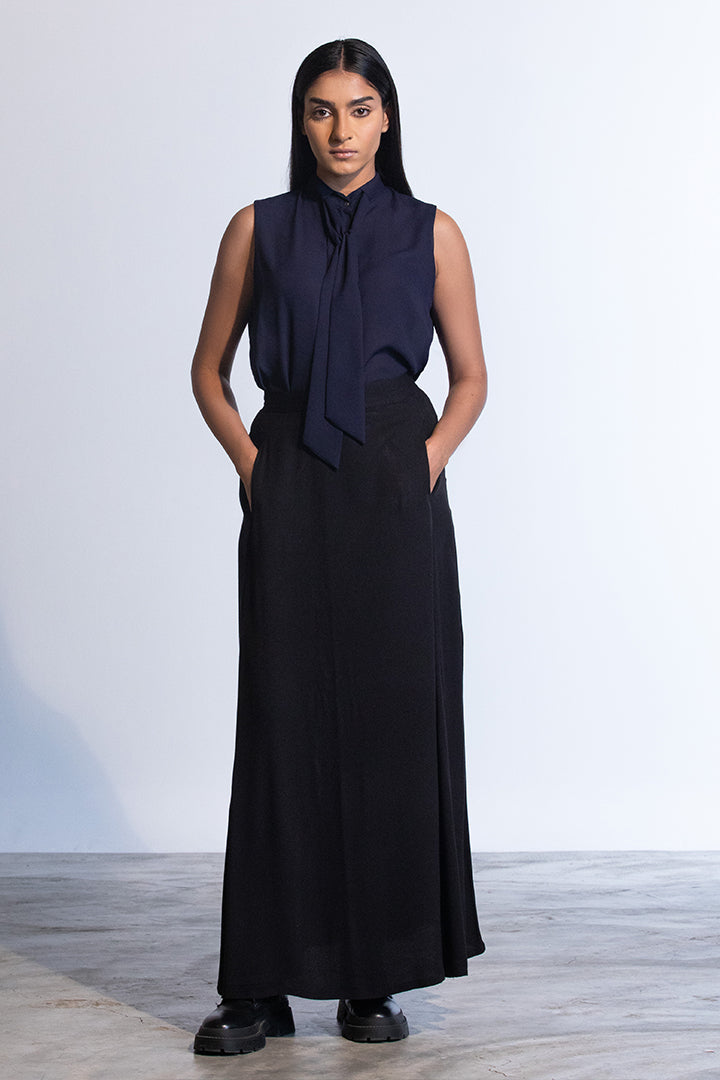 Long length skirt , flared, high waisted, satin skirt, non sheer, two in seam pockets.